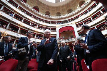 Poi, tra gli applausi, l'ingresso in sala ( sotto potete vedere il video ), assieme alle autorità, all'interno del teatro, che, per l'occasione, ha aperto la cupola trasparente del tetto, illuminando l'interno di luce naturale.