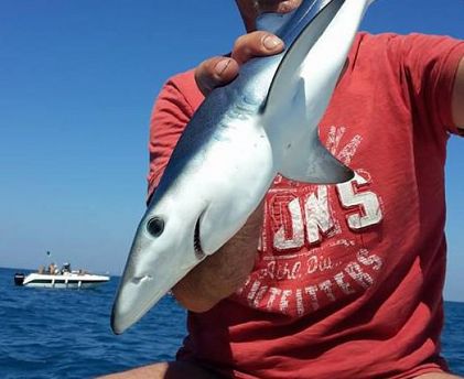 E' stata una sorpresa per il pescatore sportivo Simone Damiani, quando ha tirato la lenza e si è visto spuntare attaccata all'amo una piccola verdesca, un cucciolo di squalo. Ma Damiani l'ha subito liberata, giusto il tempo di uno scatto che poi ha pubblicato sul suo profilo Facebook.