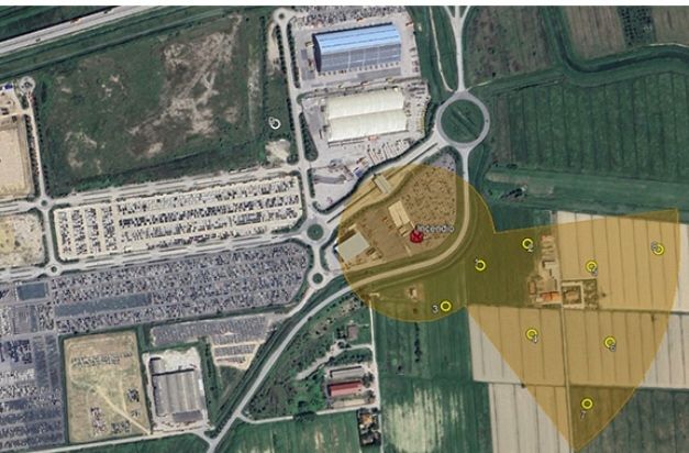 Considerato rilevante l’interessamento della matrice aria e la tipologia dei rifiuti incendiati, è stato attivato il Settore specialistico di Modellistica previsionale dell’Agenzia per l’individuazione dei punti di massima ricaduta degli inquinanti.
