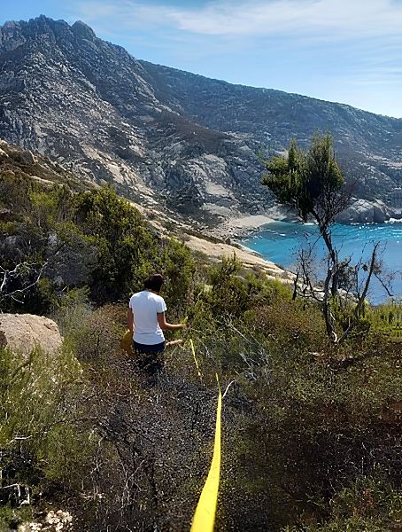 All’Isola di Capraia il progetto prevede il supporto scientifico alla gestione del vivaio di specie vegetali di interesse conservazionistico e il monitoraggio dell’impatto del muflone sulla rinnovazione della vegetazione arborea e arbustiva.
