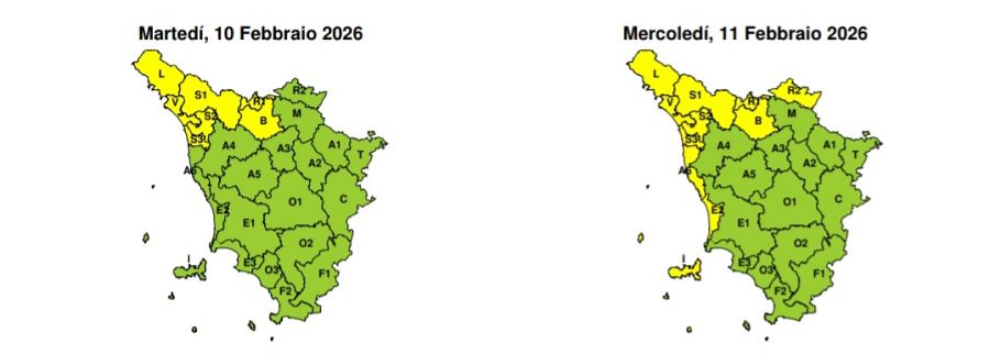 Mappa dell'allerta (Fonte: Regione Toscana)