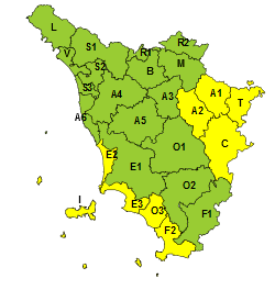 La Sala della Protezione civile regionale ha diramato un codice giallo che riguarda la costa centro-meridionale e l'Arcipelago toscano