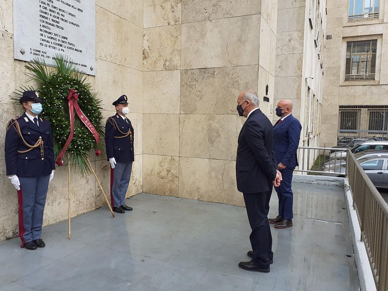 LIVORNO — Questa mattina, alla presenza del Prefetto Paolo D’Attilio, del Questore Roberto Massucci e di una ristretta rappresentanza dei poliziotti sella provincia di Livorno, nel rispetto delle norme anti-Covid, è stata deposta corona presso la lapide commemorativa dei caduti della Polizia di Stato livornese, in occasione dell'anniversario della fondazione della Polizia di Stato, che cadeva il 10 Aprile. La celebrazione labronica è stata ritardata di due giorni rispetto al resto del Paese per lasciare il giusto spazio alle commemorazioni per le vittime del disastro marino della Moby Prince.