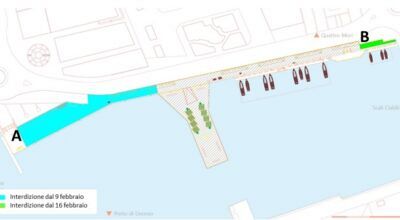 Per questo motivo, l’ente portuale ha disposto a partire dal 9 Febbraio l’interdizione delle aree a nord del Pennello del Mediceo, compresi la banchina e il piazzale prospiciente la Fortezza Vecchia (area evidenziata in azzurro nella foto).