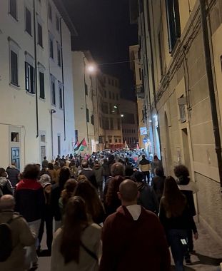 Dopo la notizia del blocco della flotilla anche a Livorno è partito un corteo con studenti e cittadini