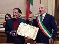 Il sindaco ha consegnato a Protti la Livornina d'Oro, massimo riconoscimento della città di Livorno