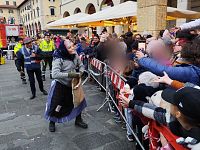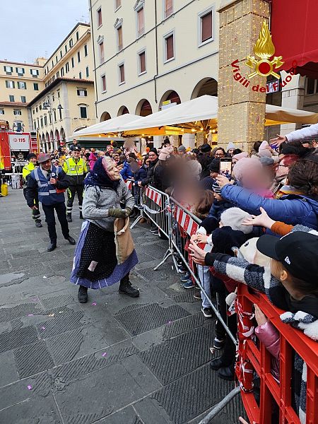 In tanti a Livorno ad aspettare la Befana che si è calata dall'alto per portare i dolci ai bambini grazie ai vigili del fuoco