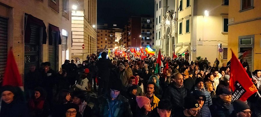 "Oggi pomeriggio - fa sapere Usb Livorno - hanno sfilato almeno un migliaio di persone a Livorno, in occasione della giornata internazionale di lotta contro la guerra e il riarmo. Giornata iniziata con lo sciopero dei portuali e il presidio davanti al terminal Darsena Toscana.