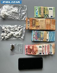 Gli agenti hanno gli hanno trovato in una tasca dei pantaloni un involucro in cellophane con all'interno frammenti e resti di sostanza stupefacente e contanti per 160,00 euro mentre sul mezzo c'erano 23 involucri termosaldati in cellophane trasparente e contenenti sostanza solida di colore bianco dal peso lordo di 18,37 grammi, poi risultata cocaina.