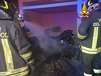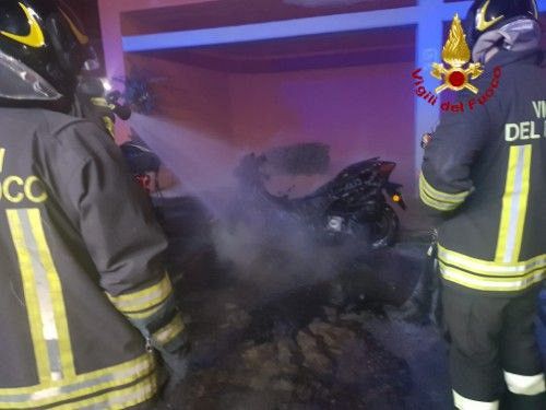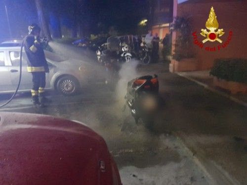 Il rogo ha coinvolto uno scooter, provocando danni anche ad un altro motociclo e a due vetture limitrofi.