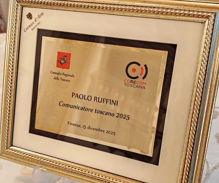 E ancora: "Con ironia, leggerezza e profondità, Paolo Ruffini riesce a parlare a pubblici diversi, valorizzando la Toscana e portando la propria identità territoriale come segno di creatività, autenticità e vicinanza alla comunità. Per l’impegno nella divulgazione culturale, per la capacità di emozionare e unire attraverso le parole e le storie, e per il contributo originale al panorama comunicativo regionale e nazionale, il Corecom Toscana gli conferisce il riconoscimento di “Comunicatore Toscano 2025”.